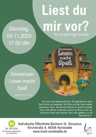 Am Dienstag, 04.11.2025 um 17.00 Uhr laden wir wieder zu unserer beliebten Vorleseaktion: Liest du mir vor? ein.